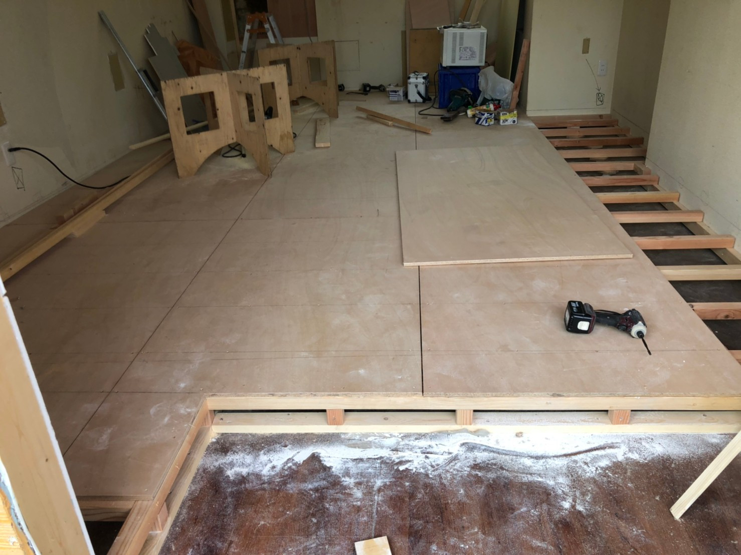 堺市|南大阪支店改修工事・床上げ|株式会社K’s 2020/07/29 株式会社K’sのブログを見て頂きありがとうございます。 今回は南大阪支店の改修工事の風景や内容を少しずつ紹介していきたいと思います。 元々、お好み約屋さんの跡地でショールームにできるような状態ではありませんでした。 外観もお好み焼き屋さんのテントがあり、外壁も内装もボロボロ・・・ でも、プロの職人さん達によりどんどん見違えっていきます!!! 下地が、ガタガタだったのでしっかりレベルをとり 少しずつ床ができてきました! 外壁塗装だけではなく内装のリフォームや店舗のリフォームも得意としています。 相談・点検・見積り無料でさせて頂いておりますのでお気軽にお問い合わせください。