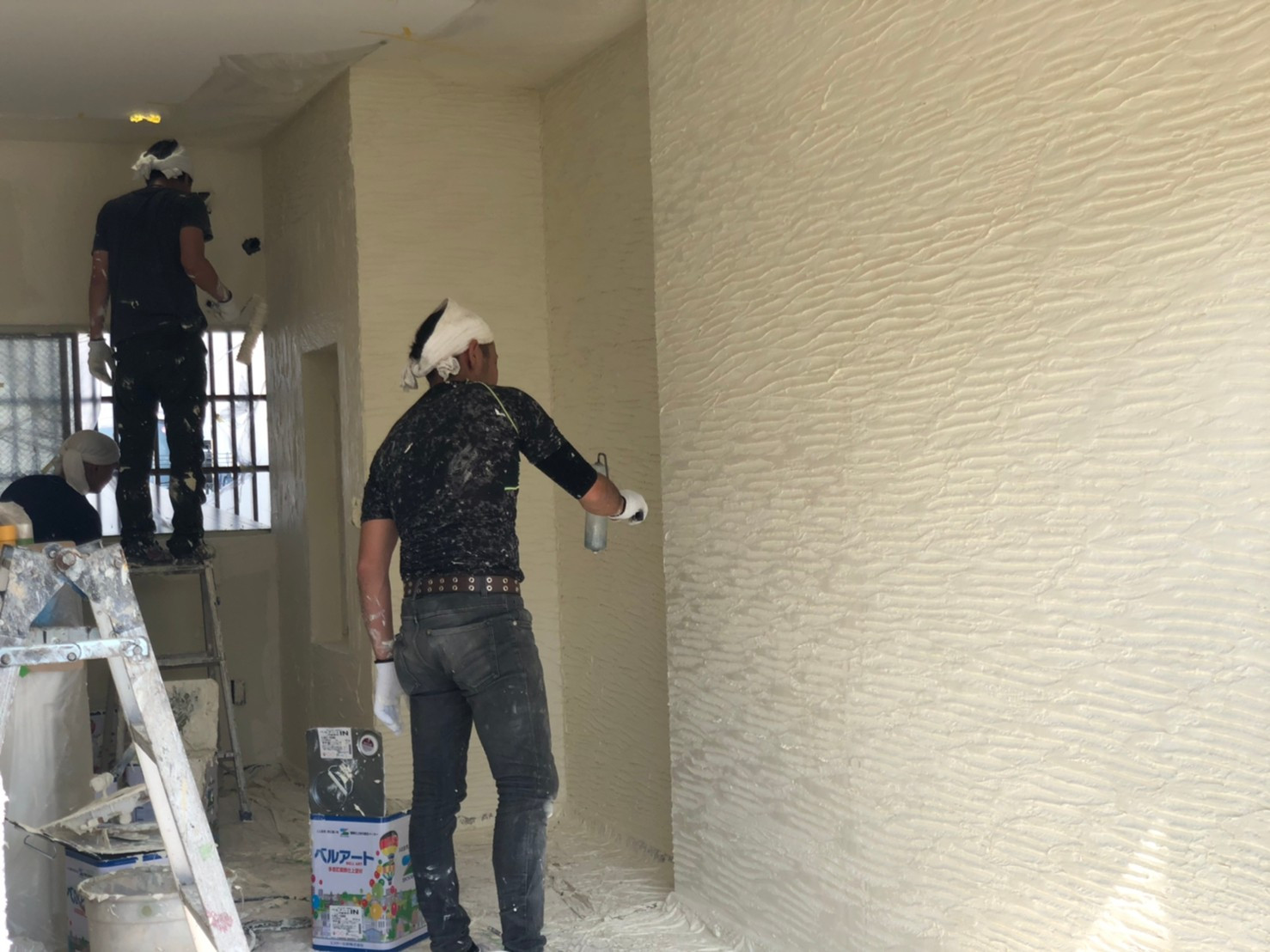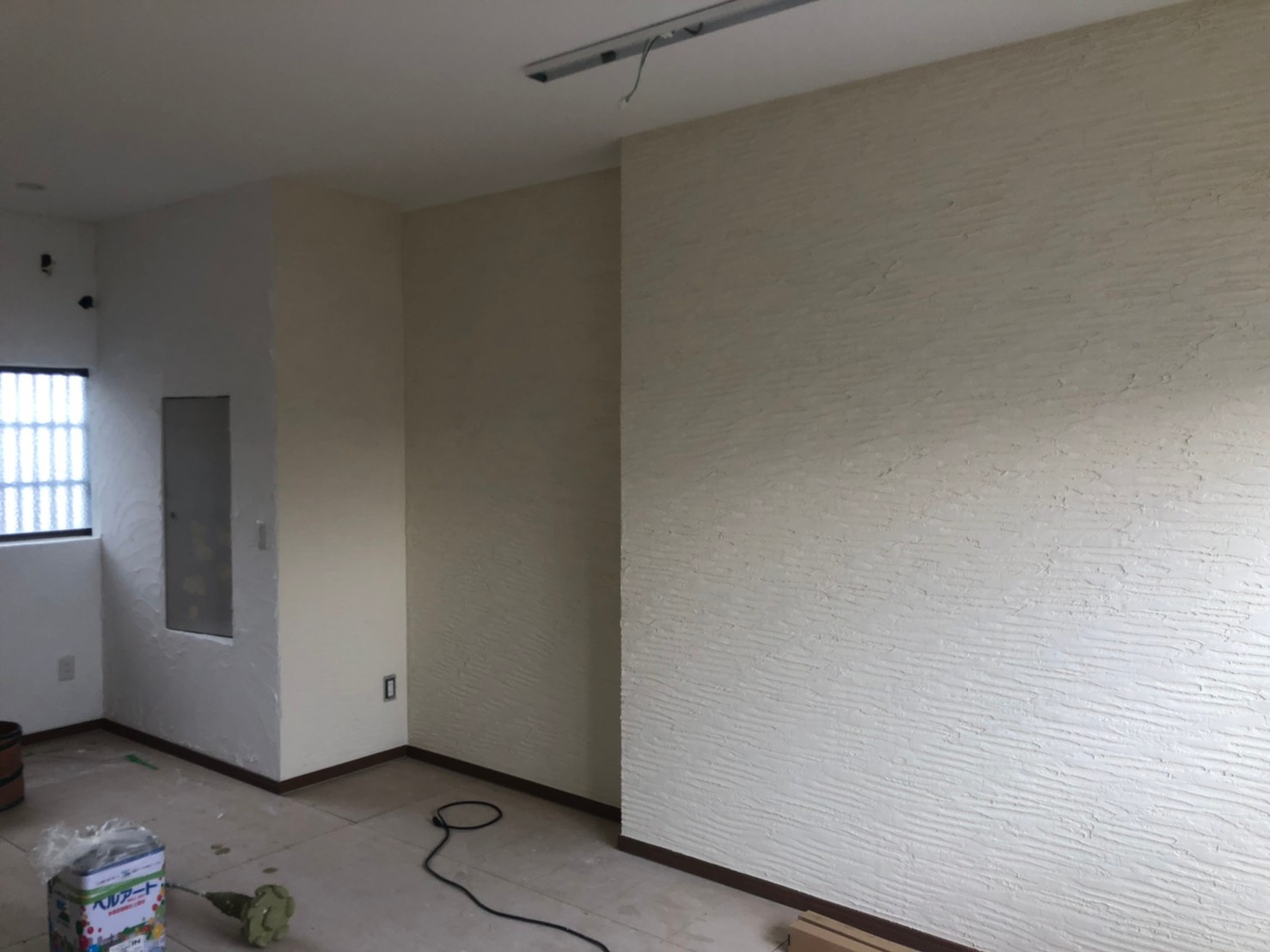 堺市|南大阪支店改修工事・内装塗装|株式会社K’s 2020/07/31 株式会社K’sのブログを見て頂きありがとうございます。 今回も前回に続き、南大阪支店の改修工事の内容と風景をお伝えしていきます。 前回は、床の【床上げ】までをお見せしました! 床と壁が終わりと次は塗装工事に入っていきます。 今回、内装の壁はクロスではなく“ベルアート”という塗料をつかい リバーという柄をつけて塗装でしあげていきました。 ※ベルアートについては今後のブログで更新していきます(^^) 最初の状態と比べると見違えっているのが一目瞭然!!! 高級感もありクロスとはまた違った良さが沢山あります。 外壁塗装・内装・店舗のリフォーム幅広くさせて頂いておりますの 相談・点検・見積り無料でさせて頂いておりますのお気軽にお問い合わせください。