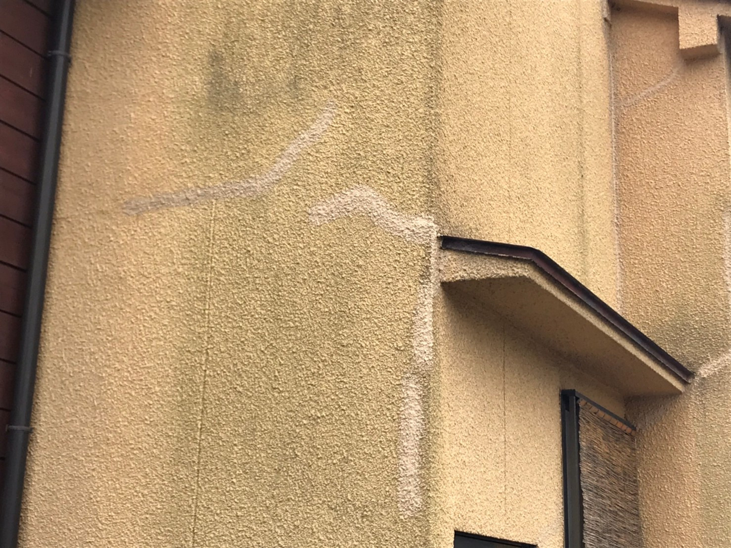 紫外線などによる経年劣化で、外壁にひび割れや、苔が繁殖し