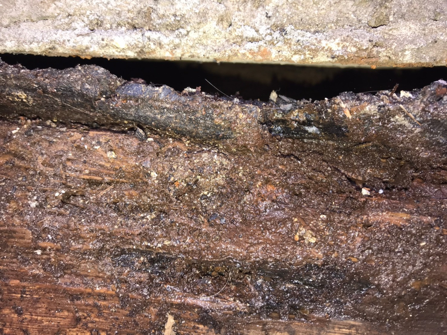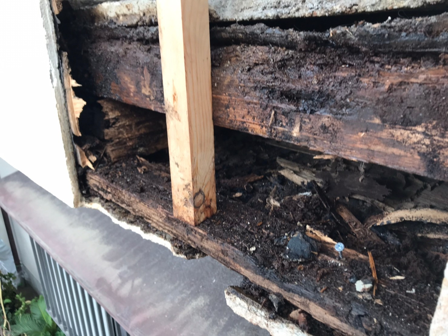 雨水が浸入し、下地の木部が奥まで完全に腐食してしまい
