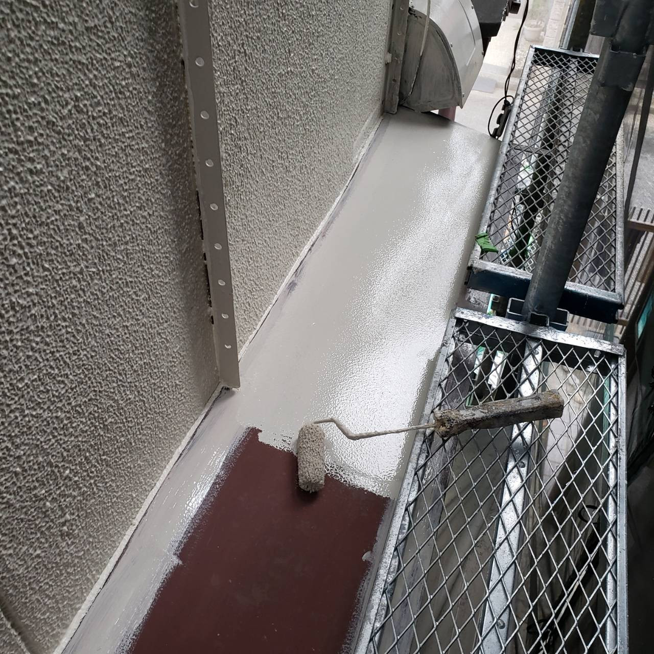 下塗り(マスチック)→中塗り→上塗りの順に塗装していきます。