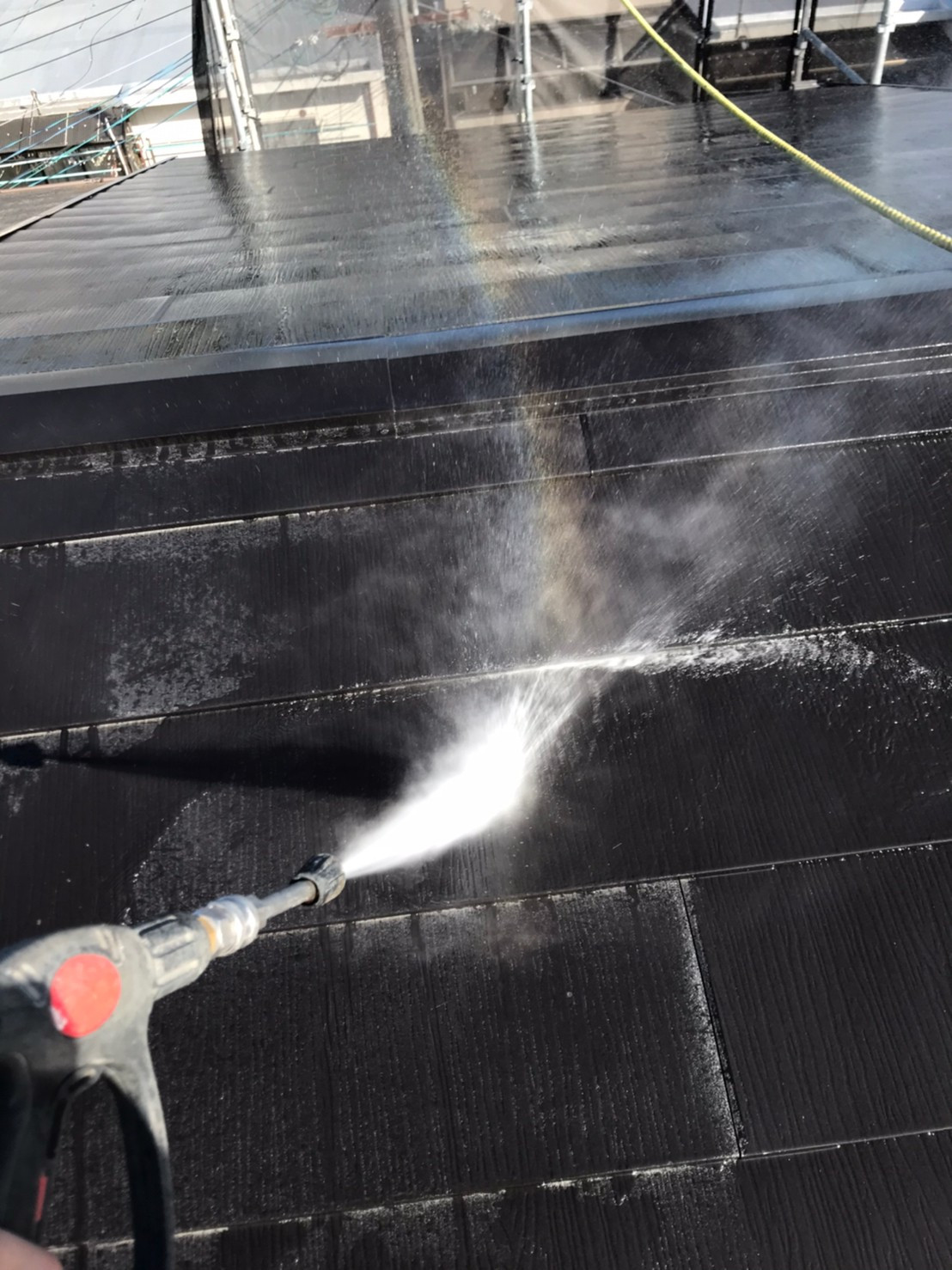 外壁・屋根共にしっかりと高圧洗浄していきます!