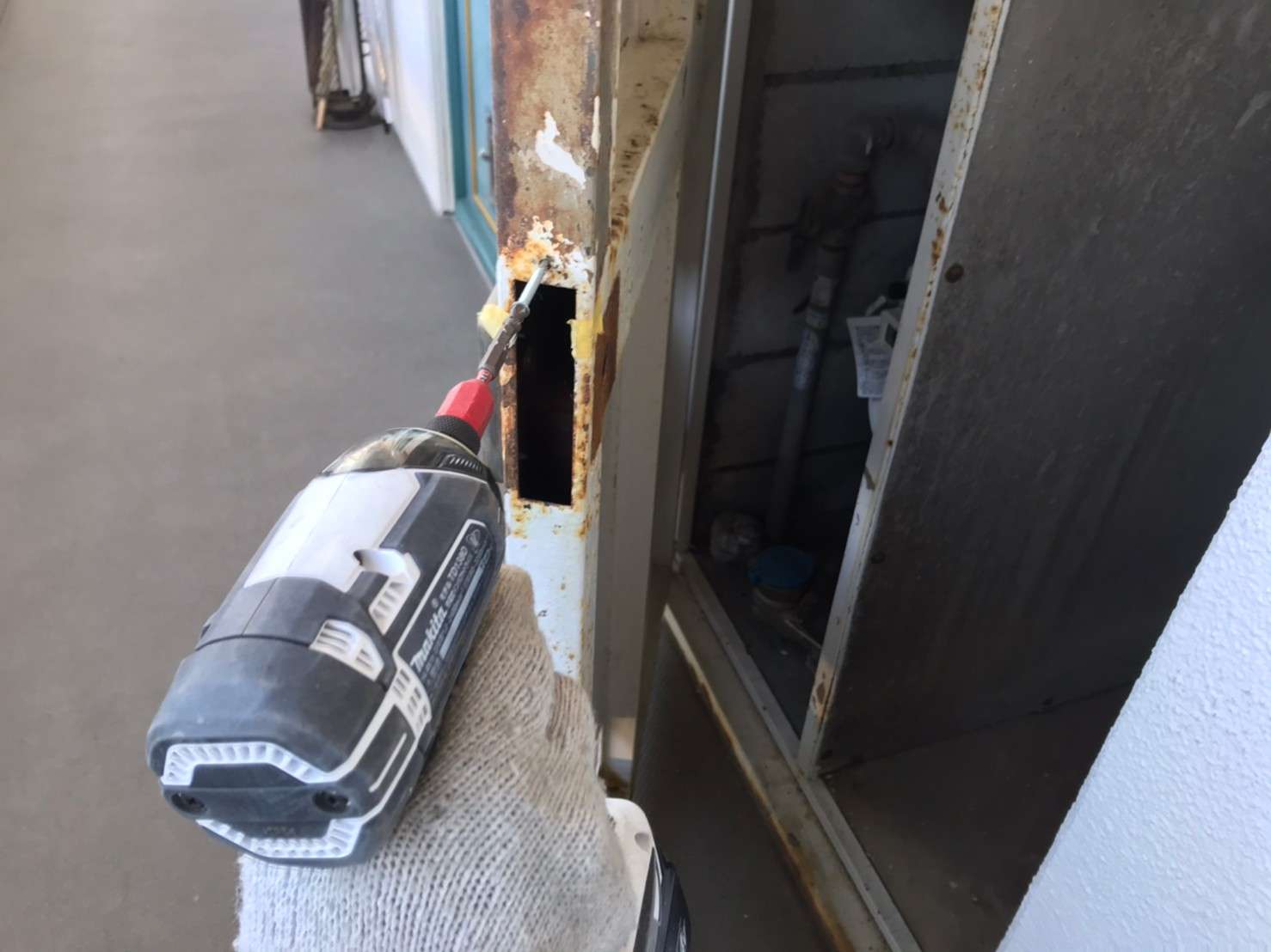 堺市南区にあるマンションのPS扉改修工事が着工しています!