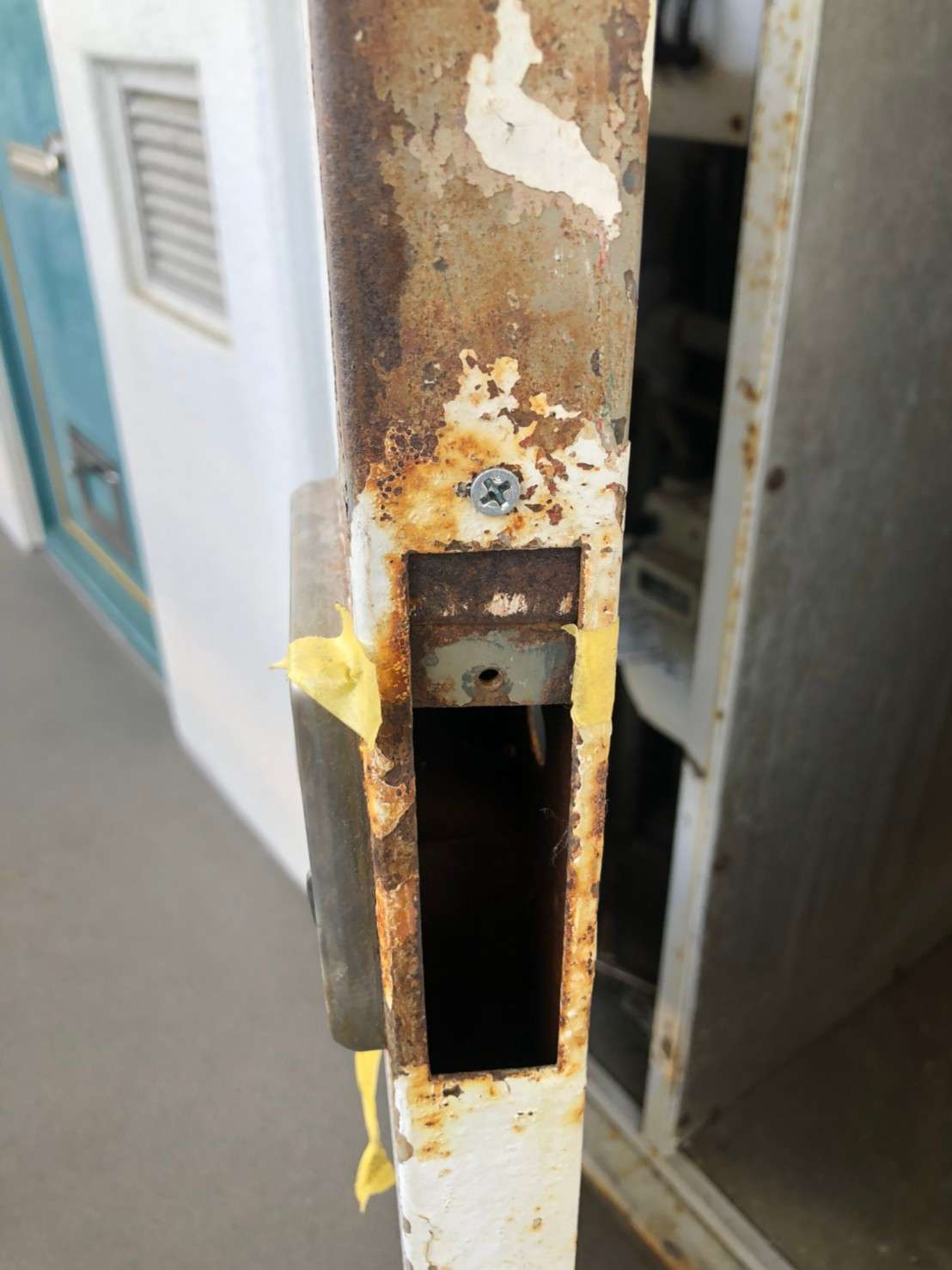 表面はもちろん、ラッチノブ部分を外すと中まで錆ています。