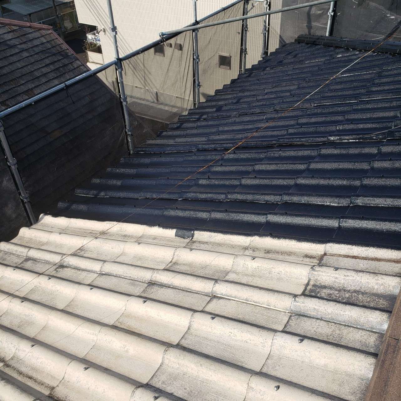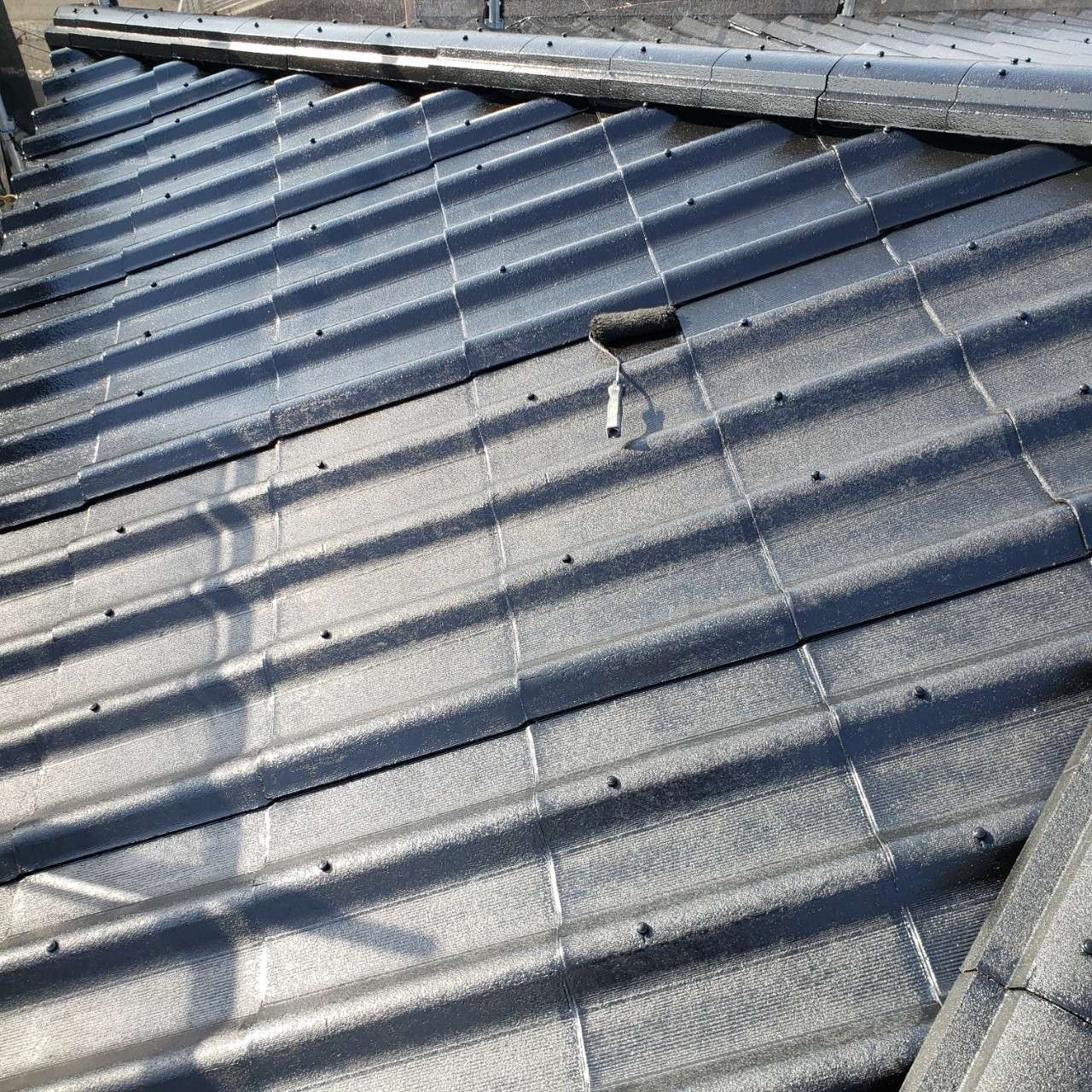 屋根も下塗り⇒中塗り⇒上塗りの3工程で塗装を行っています!