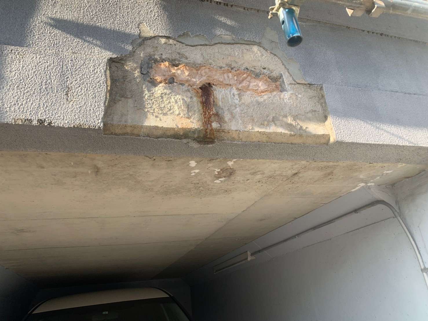 擁壁に水がまわり爆裂し、浮きやクラック(ひび割れ)もあり