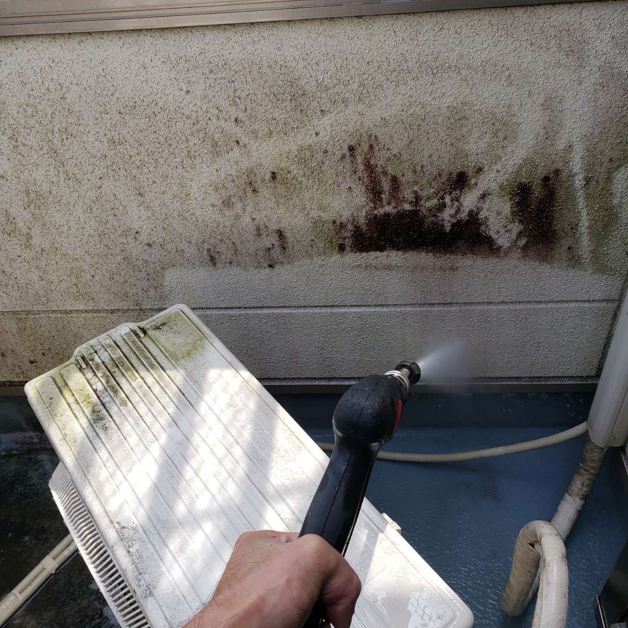 高圧洗浄で苔や汚れを洗い流していきます!