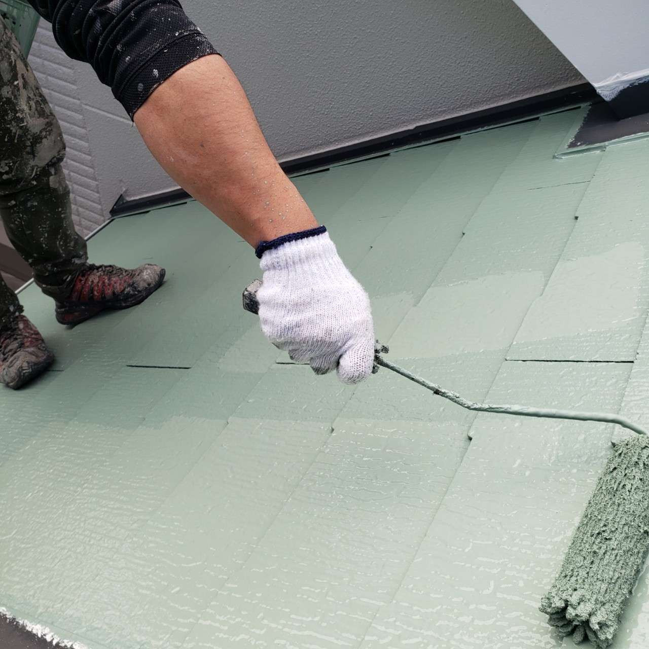 屋根も下塗り⇒中塗り⇒上塗りの3工程で塗装しています。