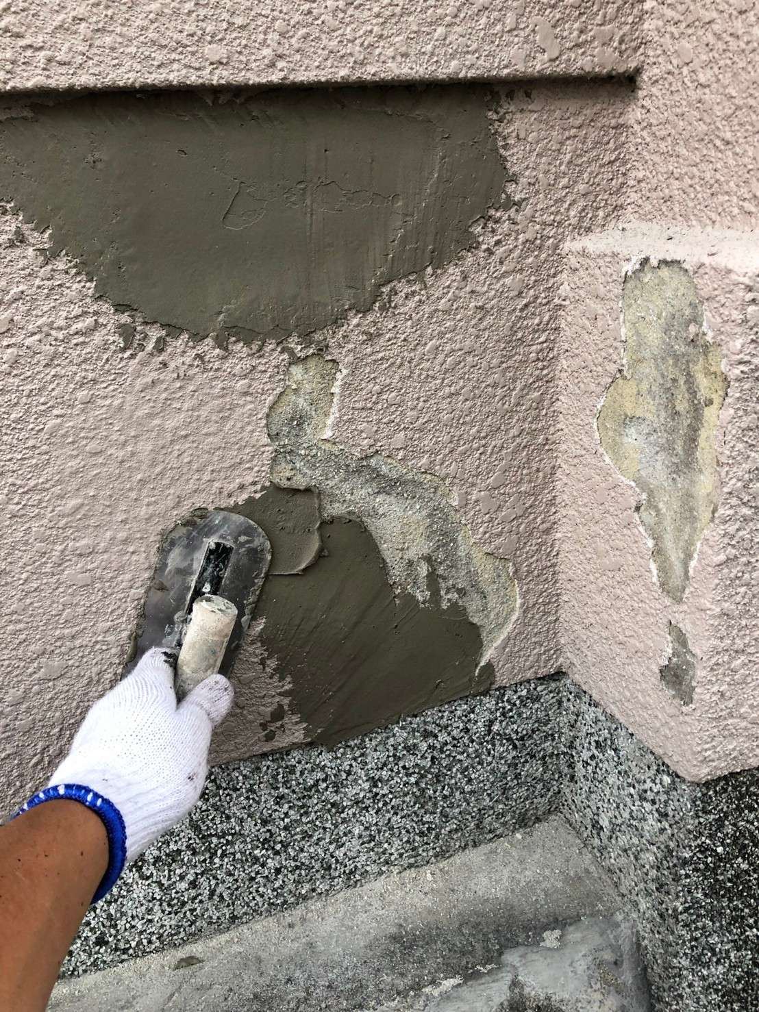 高圧洗浄のあとは補修を行っていきます!