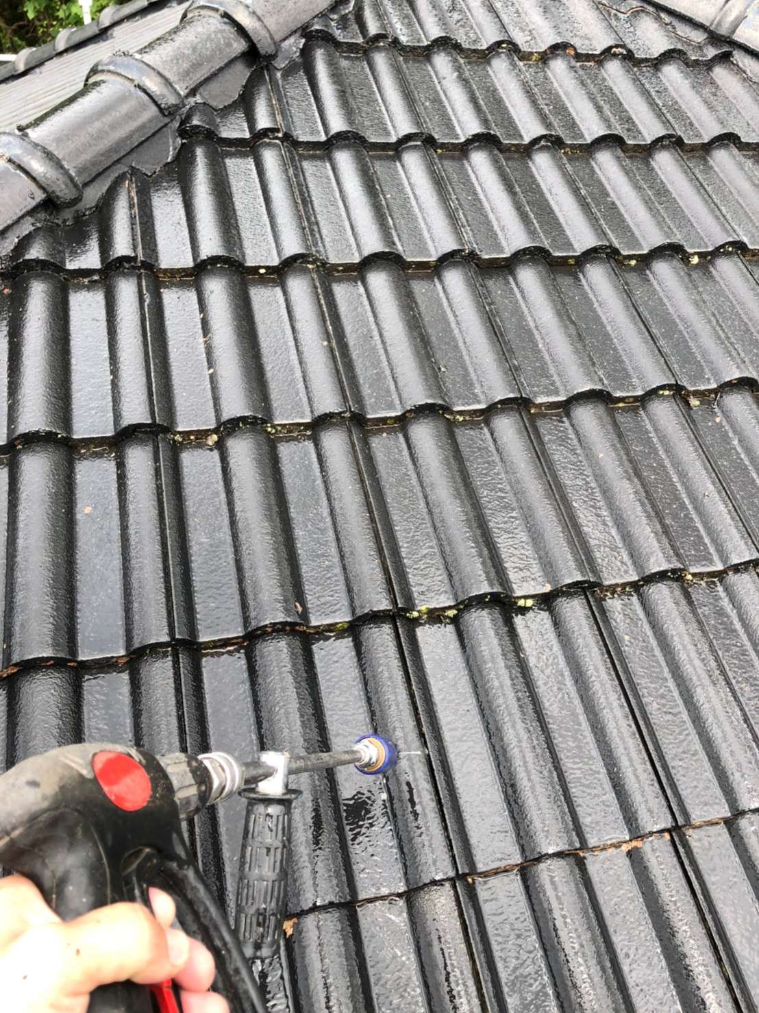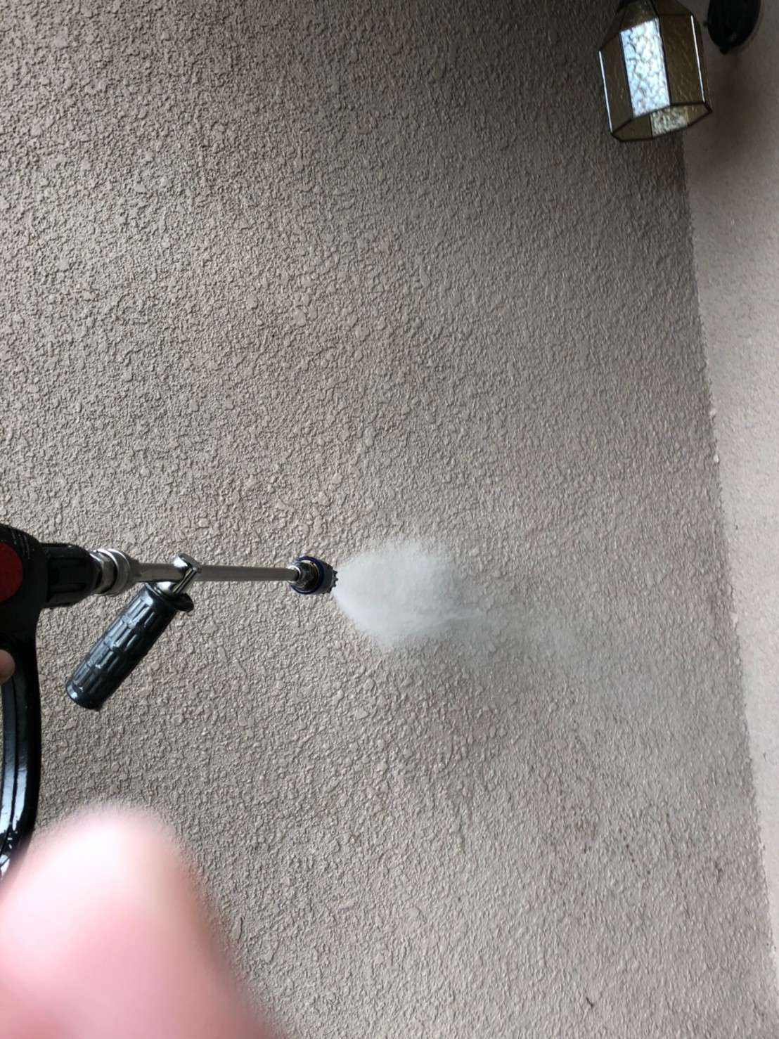 外壁や屋根の汚れを洗い流していきます(^^)/
