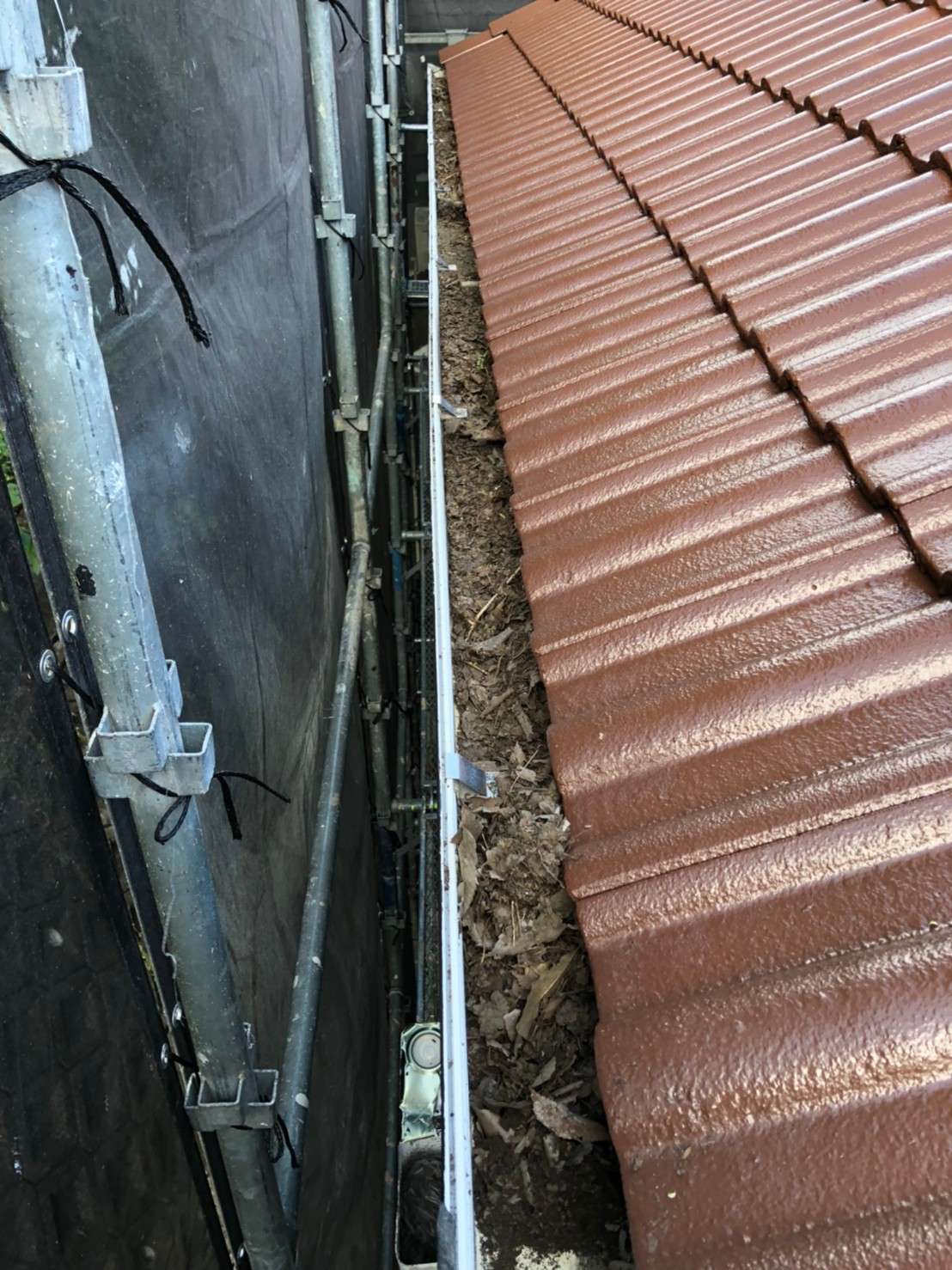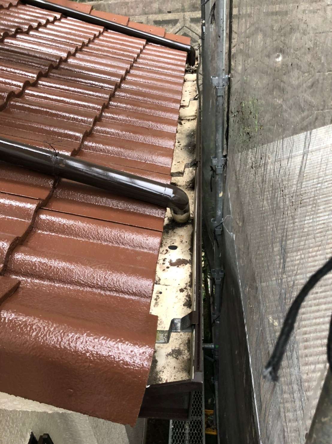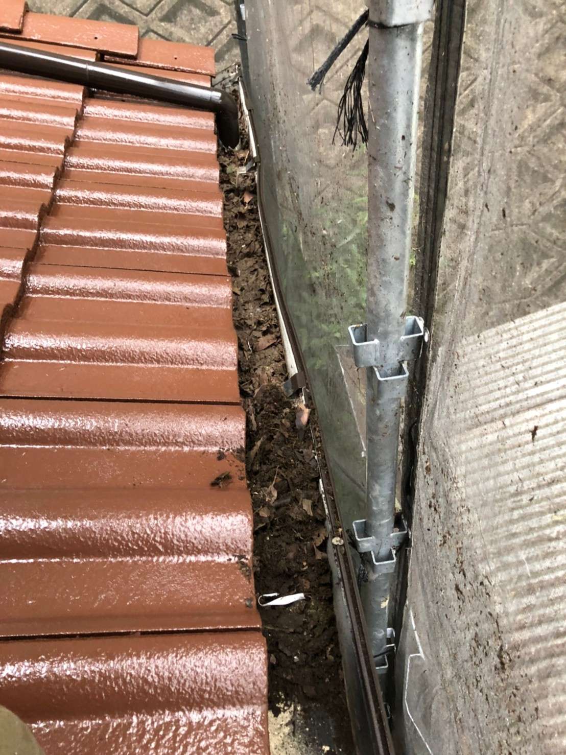 現場調査にお伺いした際に雨樋に詰まっていた