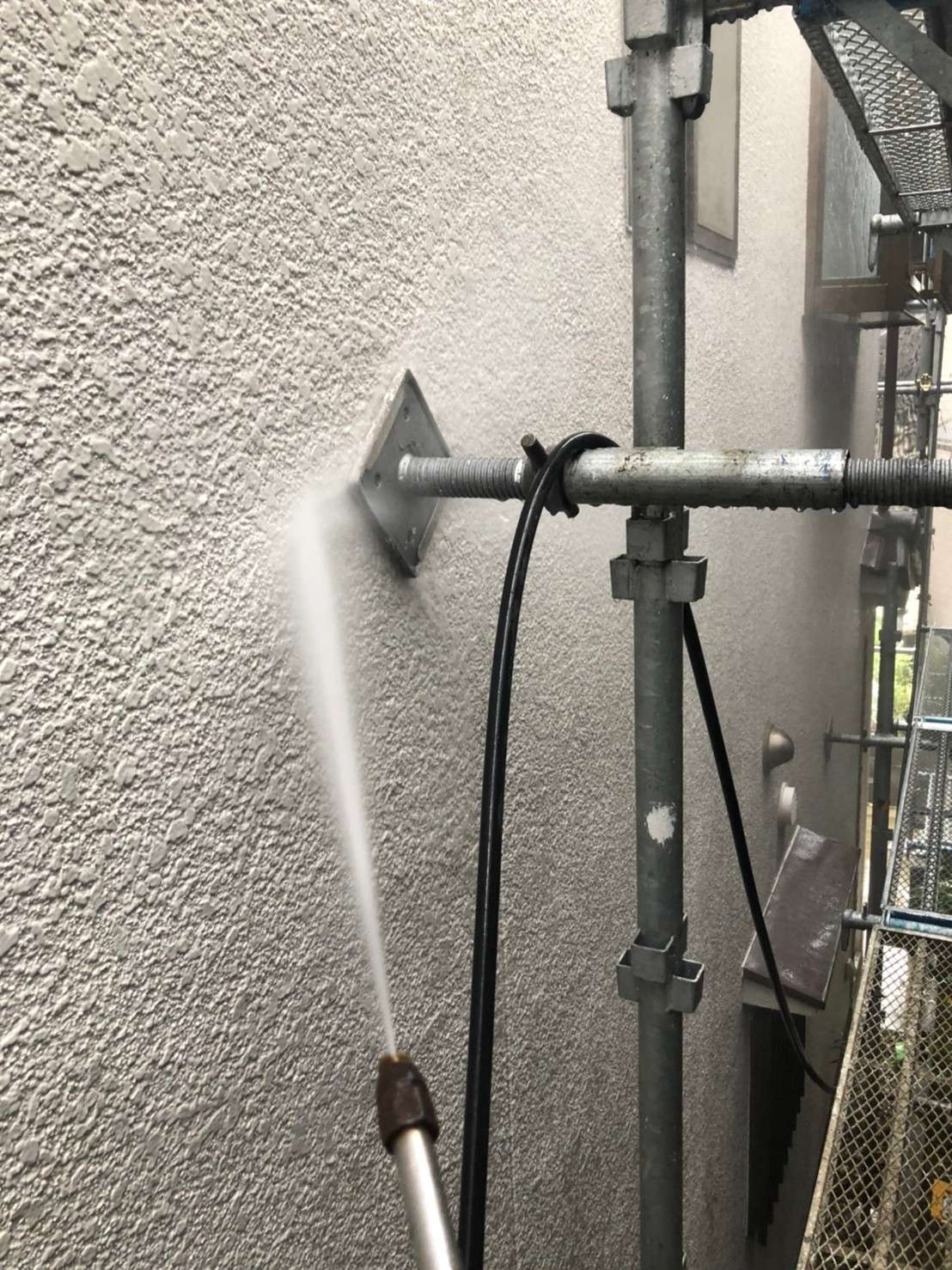 今回は高圧洗浄から外壁補修の様子までを