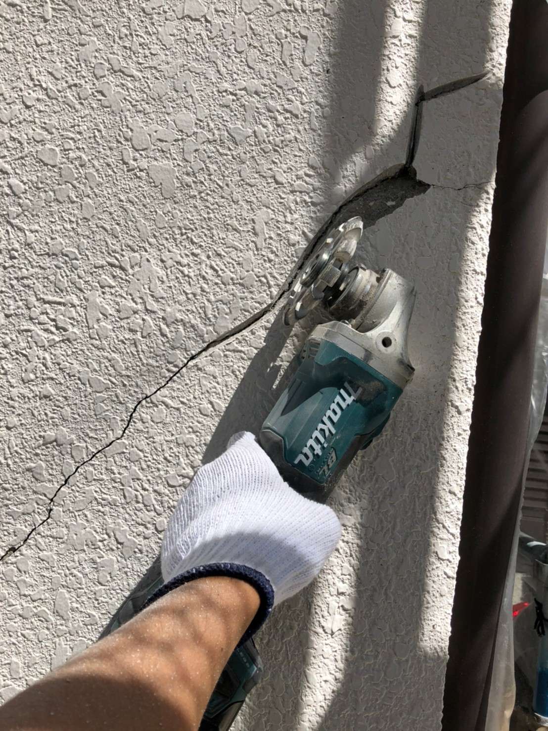 大きなクラックがある場所は一度サンダーでカットし