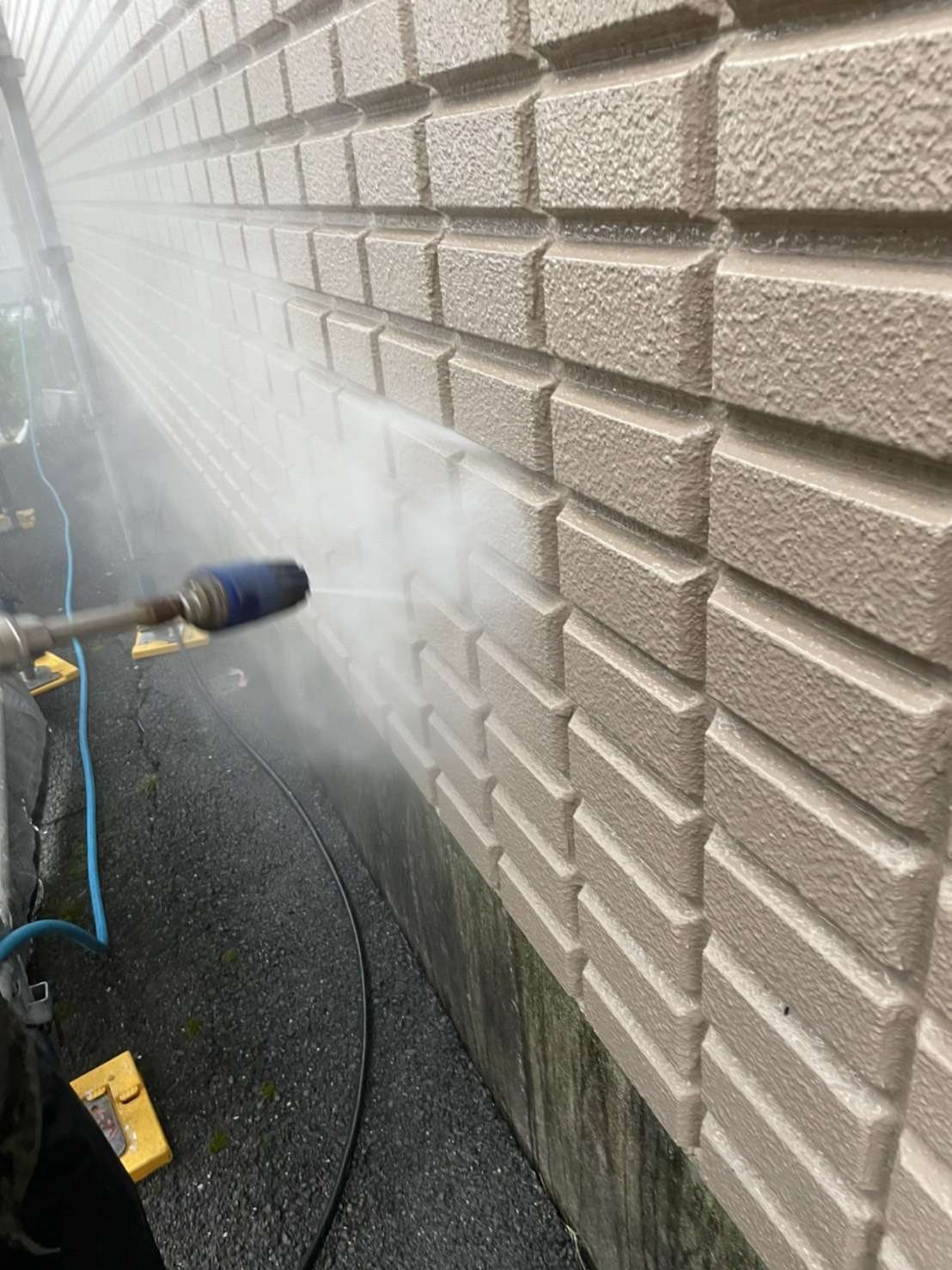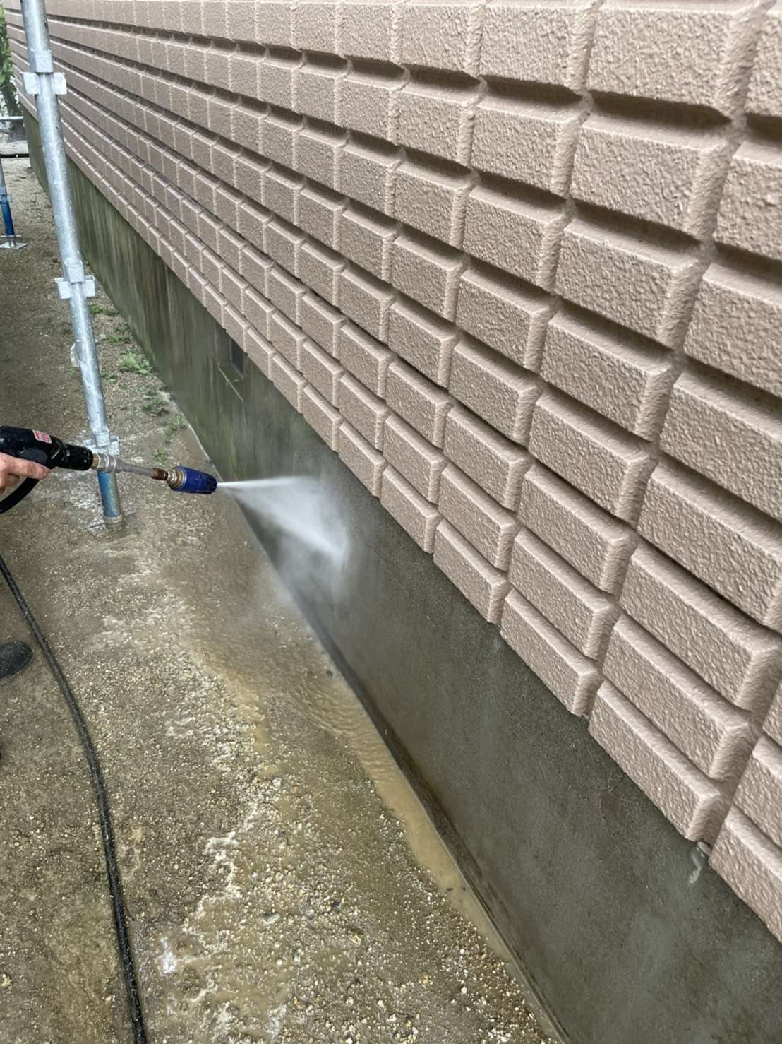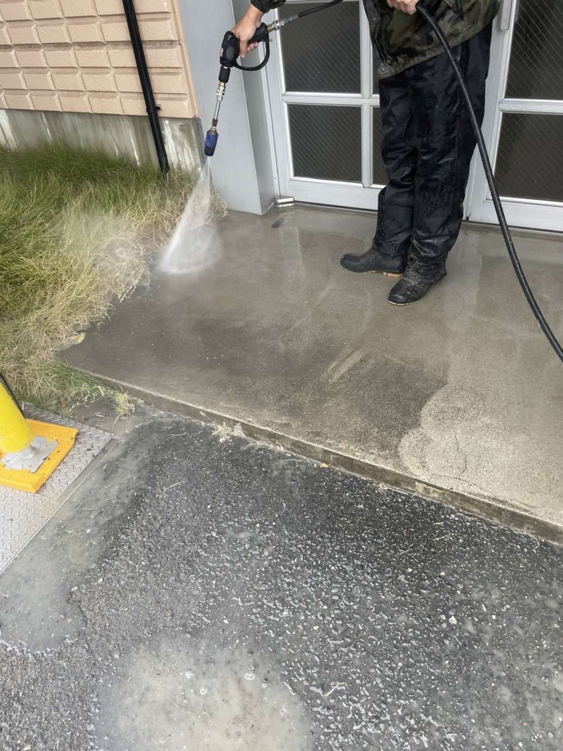 外壁部分だけではなく、土間や基礎部分も綺麗に洗浄していきます。