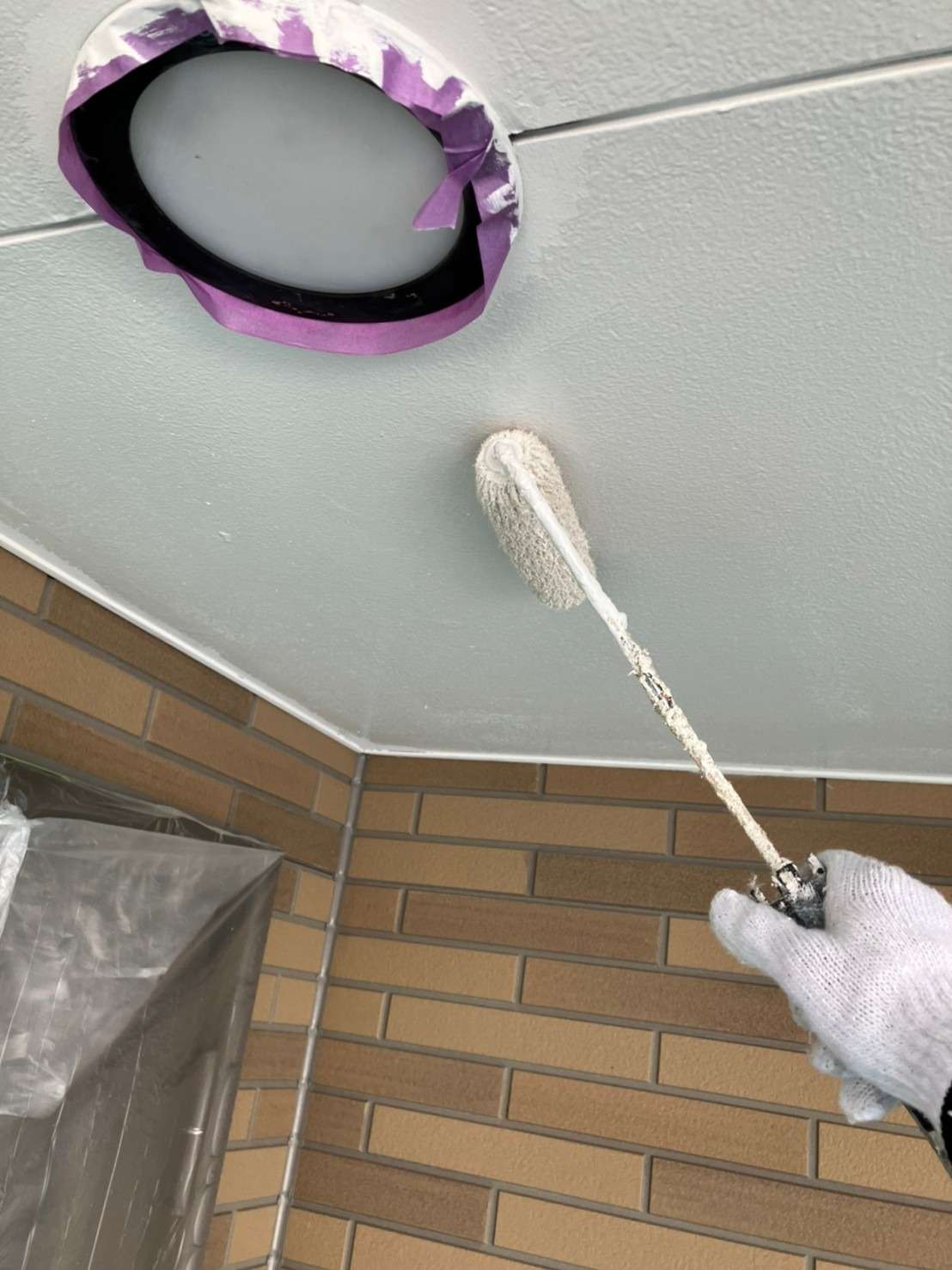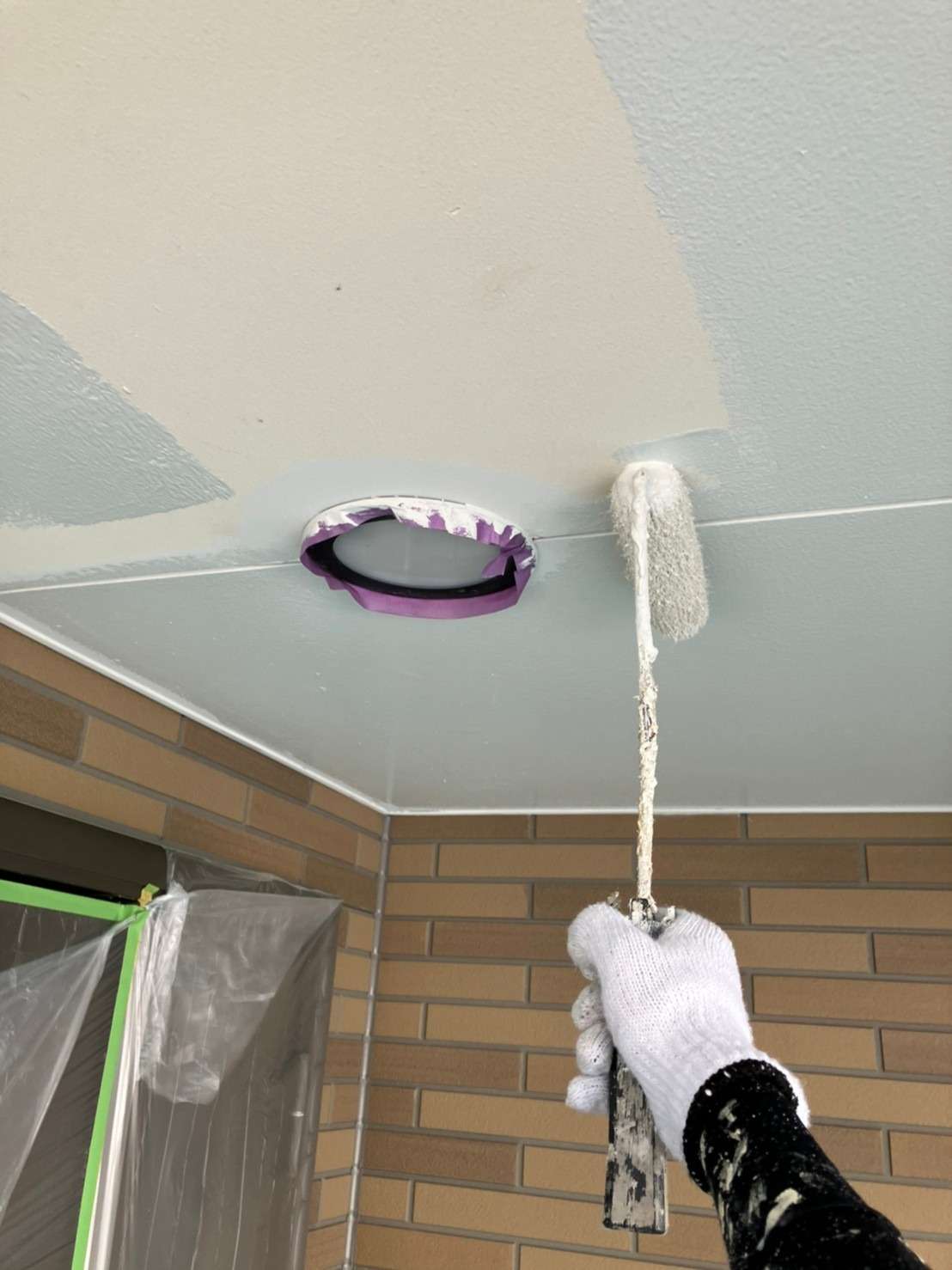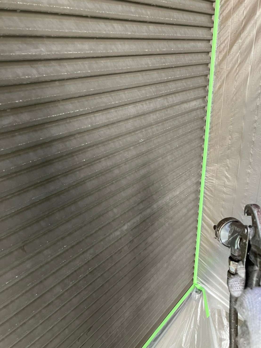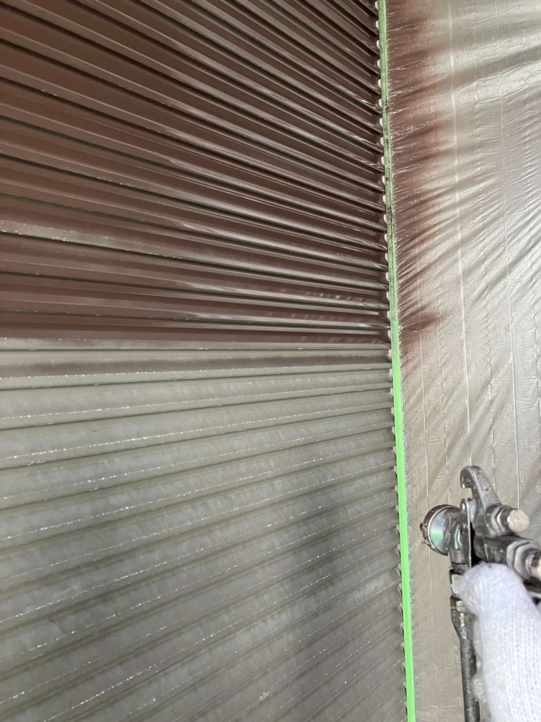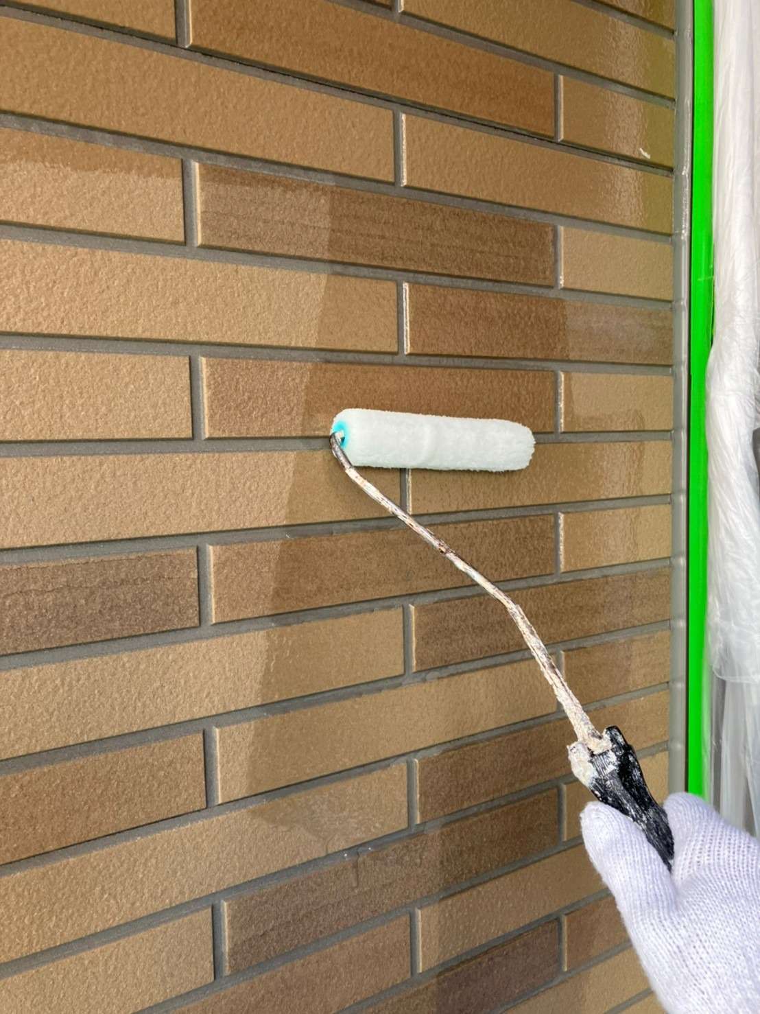 意匠性サイディング部分は意匠性を残すためにクリアで塗装していきます!