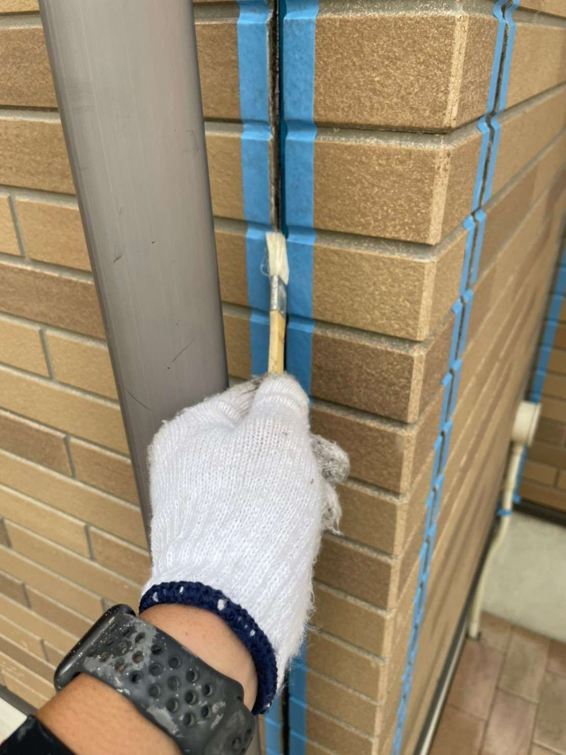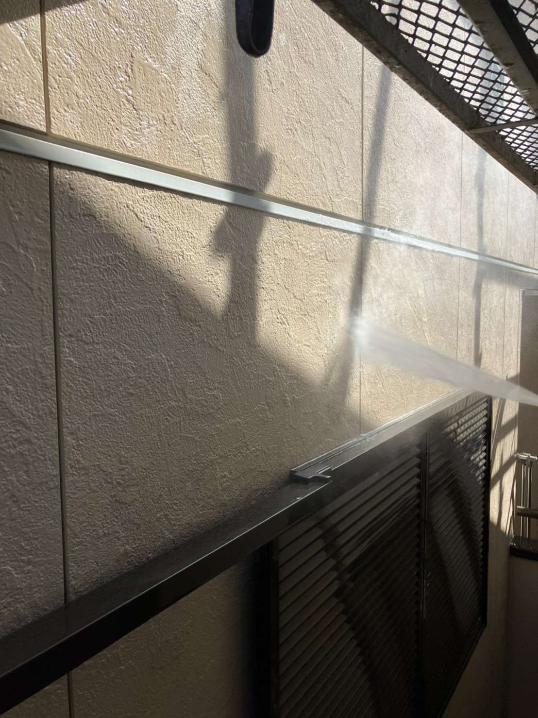 高圧洗浄で汚れを洗い流した後にコーキング工事を行っていきます!